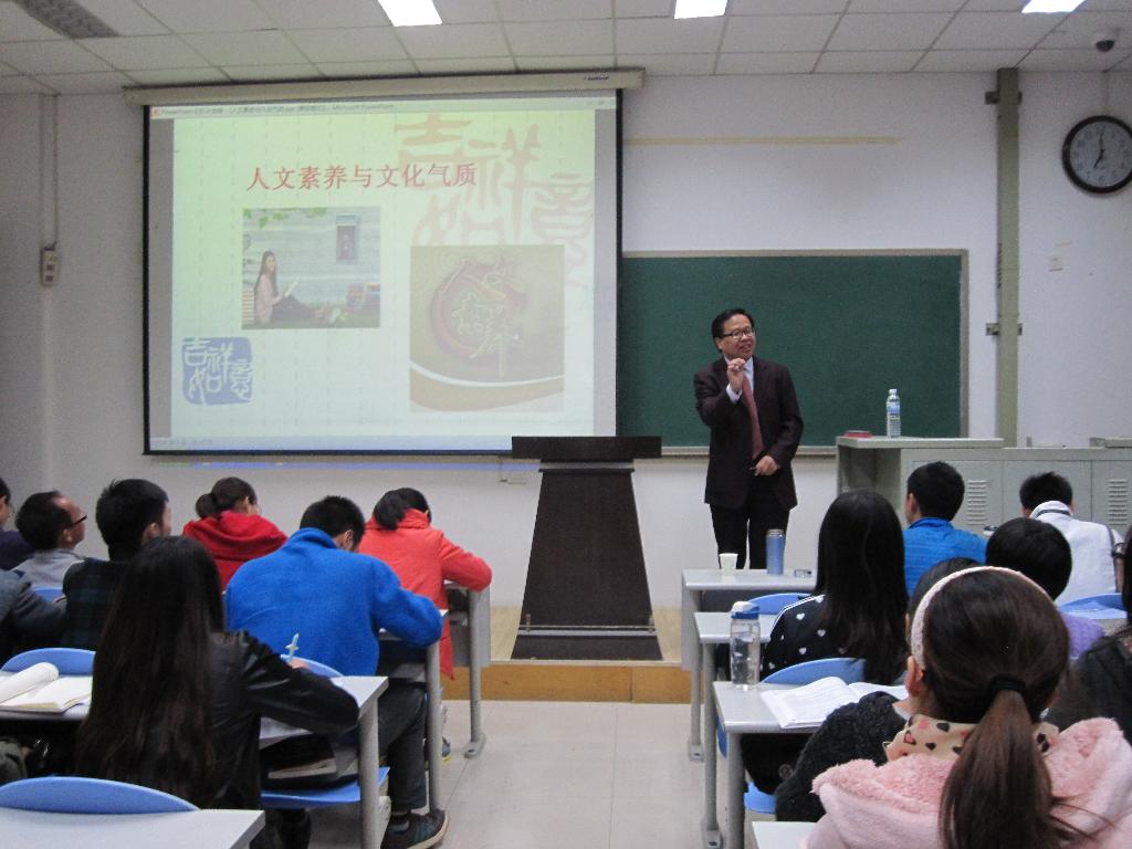 王建军教授从气质的涵义与概念,文化气质的内涵与表现,文化气质的价值和意义,文化气质的形成与涵养四个方面,从心理学的角度,以风趣幽默的语言进行了“人文素养与文化气质”的解读。在气质的涵义与概念中,王建军教授指出,刚柔并济是最完美的结合。在文化气质的内涵与表现中,王建军教授强调,文化气质是一个人的内在文化修养的外在表现,表现为高雅的言谈举止和高品位的余暇生活。在文化气质的价值与意义中,王建军教授讲解了个人涵养和教养的重要体现。王院长指出,文化气质的形成需要两个方面,一是高深的人文素养,二是优良的环境熏陶。最后,王院长希望同学们加强对人文社会科学知识的学习,加强文化技能的学习和锻炼,注意礼仪与自我形象。