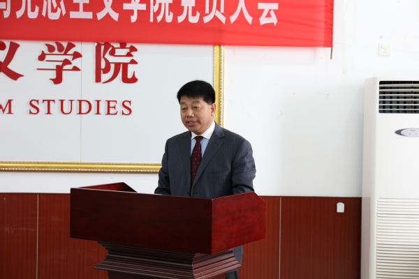 司江伟同志代表上届党委做了题为《奋发进取,追求卓越,为建成国内同类高校先进水平的教学研究型学院努力奋斗》的工作报告。4年来,在学校党委的正确领导下,学院党委在工作中严格履行党建工作主体责任,以“保发展、保重点、促融合、促和谐”为思路,与行政班子一起倡导建设“健康马院、和谐马院、创新马院”,努力形成了“大气象、大格局、大胸怀”的格局。在加强基层党组织和党员队伍建设、思想政治工作、统战工作及对群团组织的领导、党风廉政建设、校园安全稳定工作、山东高校干部与人才研究基地建设等方面取得了突出的成绩。
