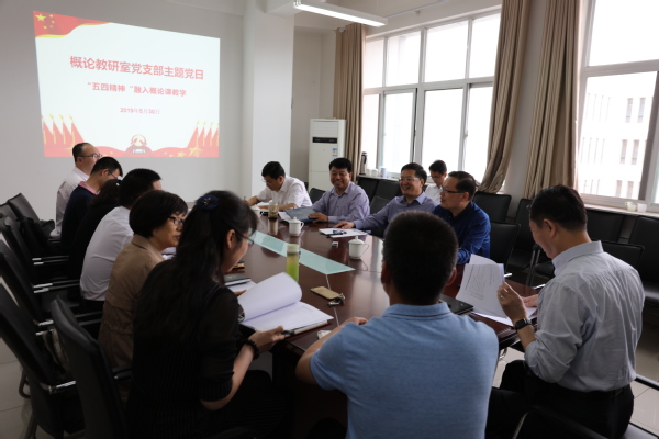 王勇书记对本次主题党日活动做了点评。王勇书记强调指出,将“五四精神融入概论课教学”作为党日活动的主题,很有必要,也很有现实意义。他认为概论教研室老师们的交流发言,内容丰富,各具特色,明确了五四精神融入概论课教学的重点、方式和途径,有利于大学生更好地把握习近平总书记关于五四运动与五四精神重要论述的精髓要义和实践要求。最后,王勇书记希望思想政治理论课教师,认清自己在立德树人、培根铸魂中的责任与使命,争做“四有”好老师,为培育中国特色社会主义的合格建设者和可靠接班人做出应有的贡献。