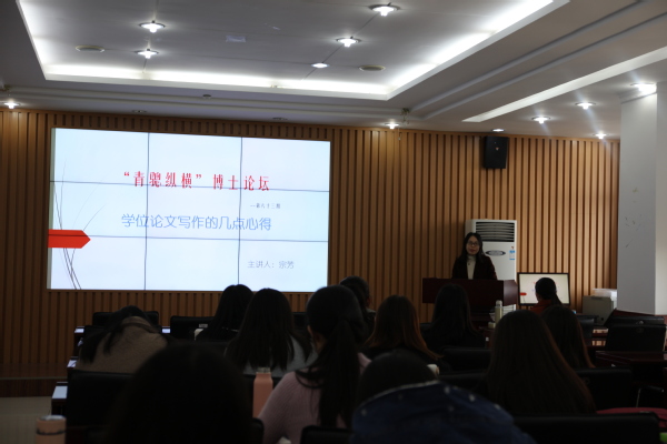 2019年11月25号下午,Beat365中文官方网站“青骢纵横”博士论坛第六十三期在文理楼457顺利举行,Beat365中文官方网站(华东)Beat365中文官方网站2016级博士研究生宗芳作关于“学术论文写作的几点心得”的学术报告,学院全体无课学生到场聆听。