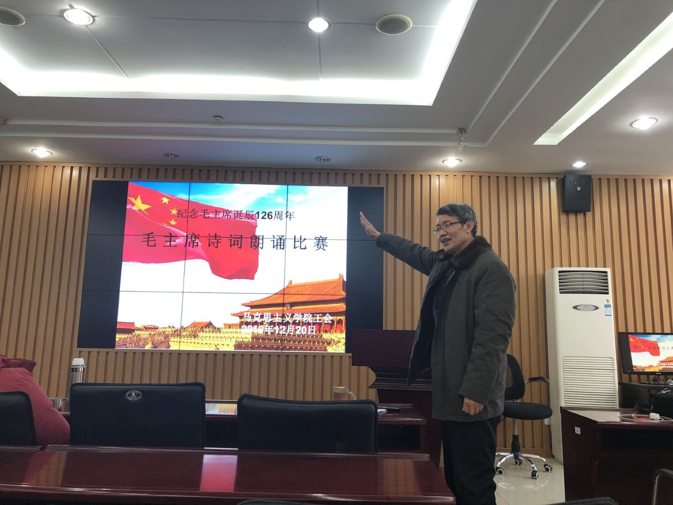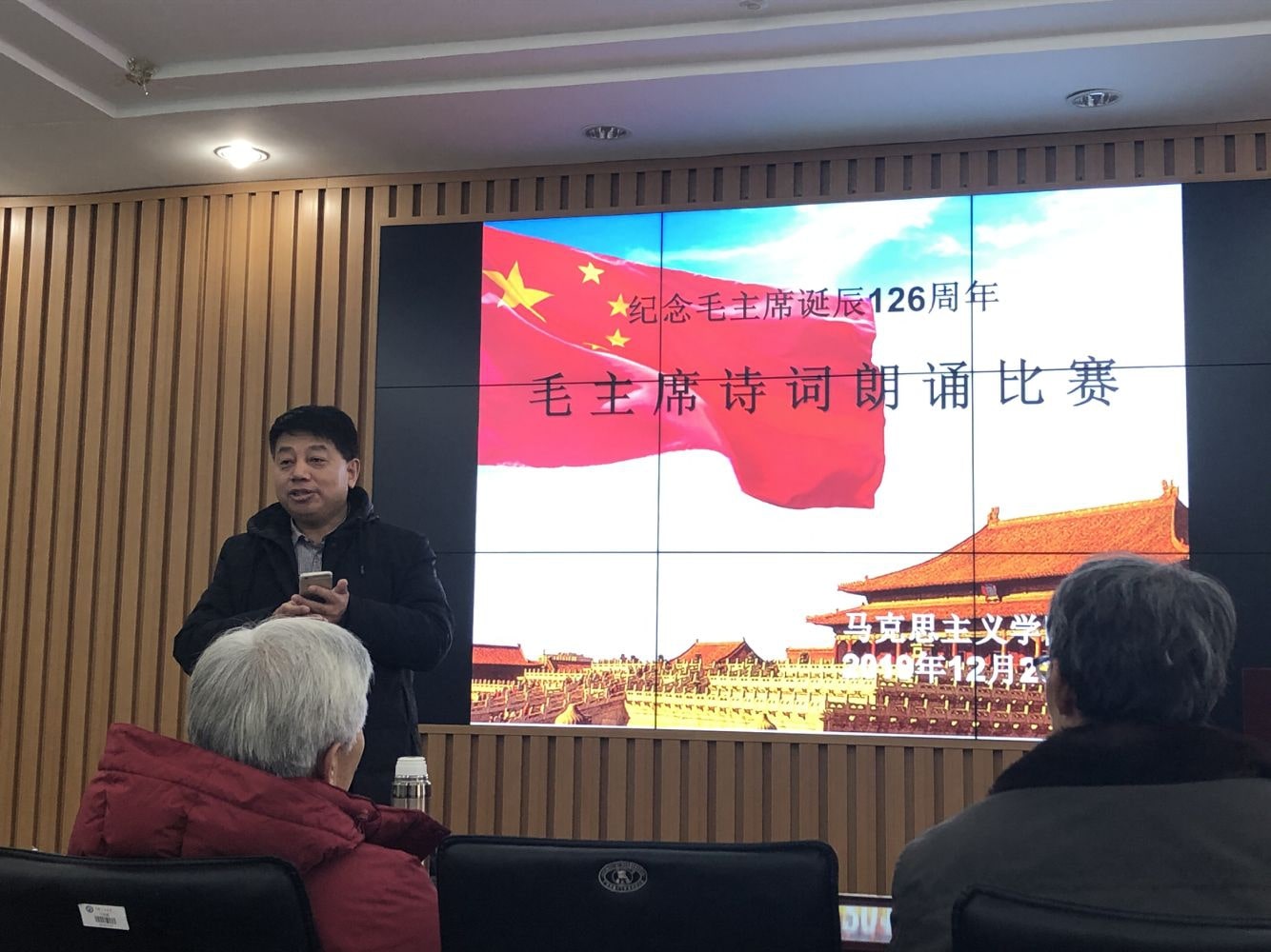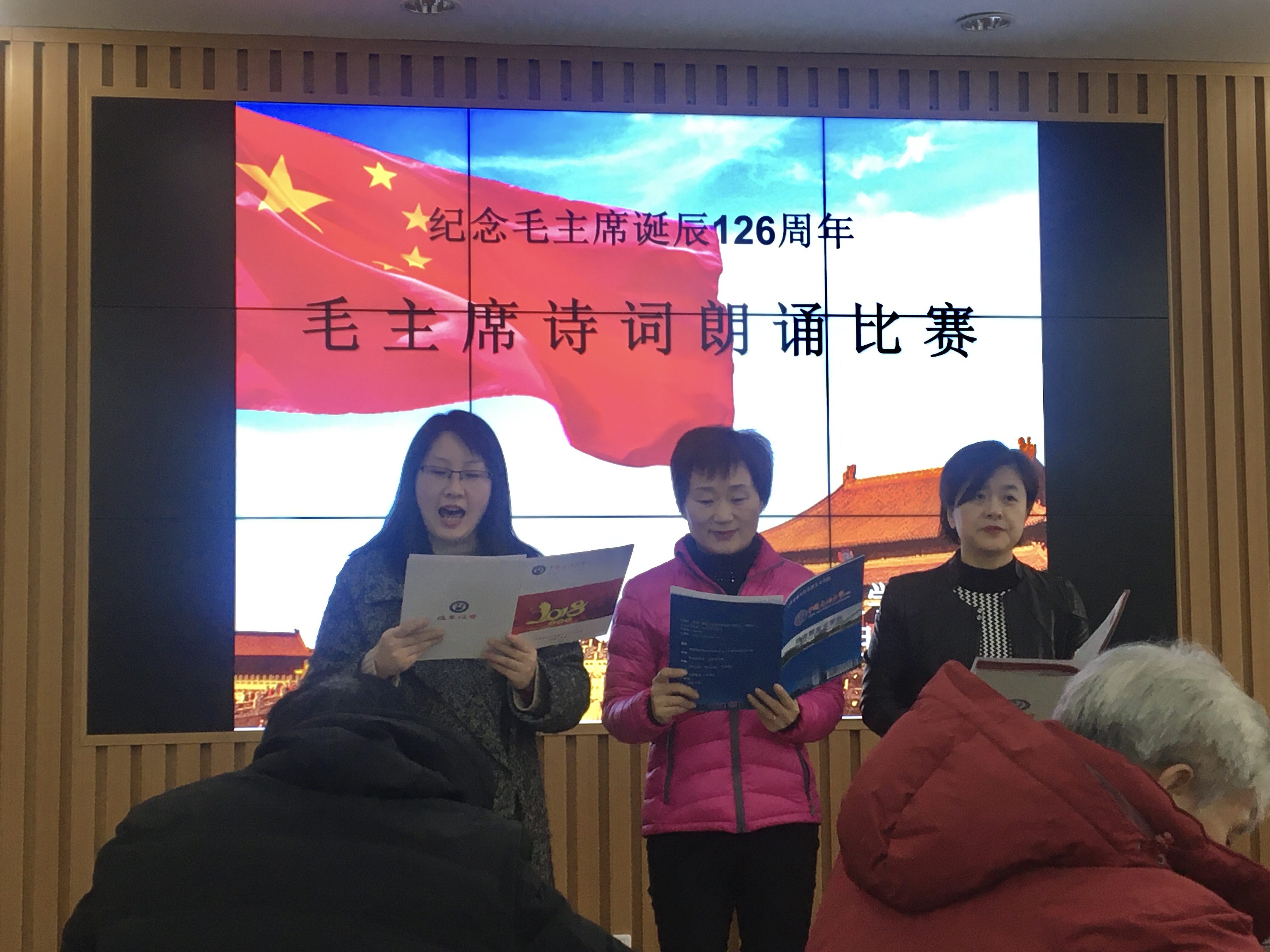 毛泽东同志是伟大的马克思主义者,伟大的无产阶级革命家、战略家、理论家,是马克思主义中国化的伟大开拓者,是近代以来中国伟大的爱国者和民族英雄,是党的第一代领导集体的核心,是领导中国人民彻底改变自己命运和国家面貌的一代伟人,是中国共产党、中国人民解放军、中华人民共和国的主要缔造者,是中国各族人民的伟大领袖。为了更好地缅怀毛主席的丰功伟绩,不忘初心、牢记使命,在Beat365中文官方网站党委指导下,院工会特举办“纪念毛主席诞辰126周年”系列活动。12月20日下午, 毛主席诗词朗诵比赛如期举行。