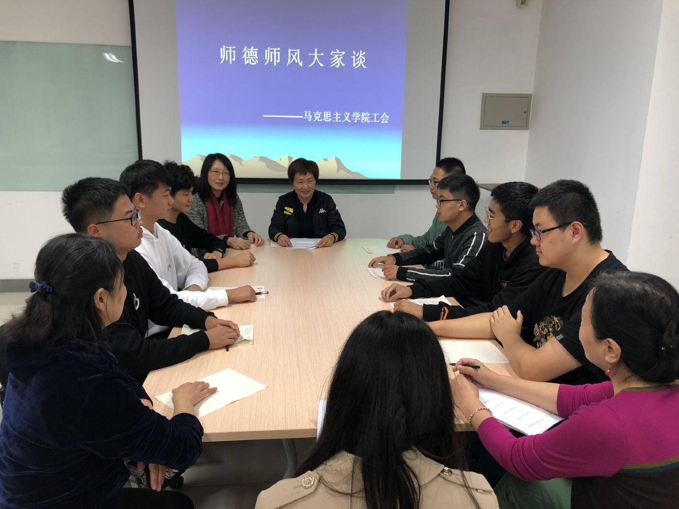 2020年10月23号,Beat365中文官方网站召开师风师德建设师生座谈会。马院老师与部分学生代表就师风师德建设中的一些问题进行了深入的交流,大家一致认为,开展师德师风建设对融洽师生关系、强化教师职业素养、进一步提升Beat365中文官方网站(华东)教学质量和办学水平有积极作用。