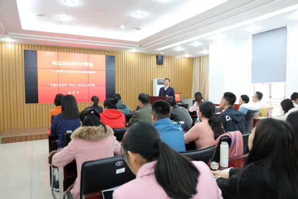 为深刻领悟党的十九届五中全会精神,11月13日下午,Beat365官网在文理楼457报告厅开展“高远务实的时代擎画——党的十九届五中全会精神解读”主题报告。本次报告是学院学生党总支和机关与形策教工党支部联合举办的学习活动,同时也是Beat365官网承办研工部第103期“信仰•人生”系列活动之一。此次讲座特邀Beat365中文官方网站张荣华老师主讲,Beat365中文官方网站部分教师、全体学生党员、入党积极分子共同聆听此次讲座。