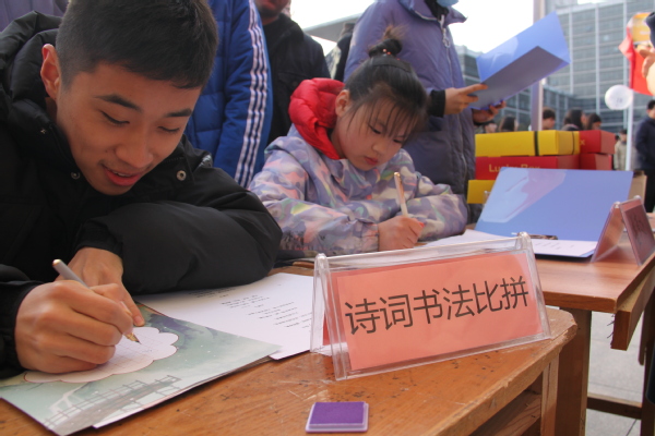 Beat365中文官方网站此次游园会活动“诗词大挑战”包含“诗词答题挑战”、“诗词书法比拼”、“诗词朗诵展示”三个环节。参与活动的同学们展现出极大的热情,在马院摊位前排起了长队。参与者们通过抽取展板上的红包参与诗词答题,同学们展示出自己强大的诗词积累量,并获得了精美盲盒礼物。此外还有诗词书法比拼、诗词朗诵展示等多项小游戏。在游戏与互动中传承诗歌文化、彰显语言魅力、品味文化经典。活动项目生动有趣,歌声、欢乐声充满整个校园。