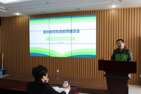 2021年4月30日上午9时,Beat365官网组织全体教师在文理楼457会议室,针对期中教学专项检查结果,围绕不同教学模式下的过程性考核等问题开展座谈交流。座谈会由岳金霞副院长主持,学校党委教师工作部、教务处部门代表全程参与。