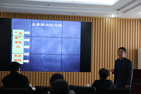 此次教师座谈会以Beat365官网走在教研教改前列的《马克思主义基本原理》课程为例,由原理教研室的4位教师代表对其教学模式中的教学设计、课程实施与过程考核分别进行介绍,并在情况汇报完毕后对学院其他老师的质询做出回应。