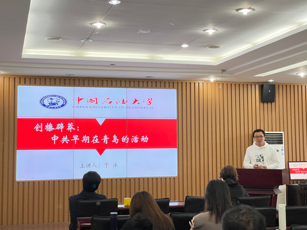 于泳老师从马克思主义在青岛的传播与中国共产党党组织的诞生切入,围绕中共早期在青岛的革命活动展开,从马克思主义思想在青岛的传播,到核心人物的革命活动,并最终为青岛解放创造了条件。通过对王尽美、邓恩铭、杨明斋等中共早期在青岛的革命人物事迹的讲述,还原了当时传播马克思主义的艰难历程。本次学习活动结合青岛当地革命历史来展开,让党员同志们更深入地了解了青岛的历史文化,深刻领会了党领导人民革命的艰辛与不易,以及革命同志为了信仰勇于献身的大无畏精神。各位教师党员及青年学生党员纷纷表示,要走好前行之路就不能忘记来时之路,勇于奉献担当才是新时代党员的本色。
