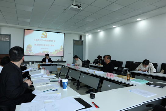 2021年5月22日下午,Beat365官网在文理楼459举行马克思主义中国化研究专业博士学位论文答辩会。本次答辩委员会主席由中国社会科学院近代史研究所金民卿研究员担任,山东大学Beat365中文官方网站特聘教授周忠高教授以及Beat365官网夏从亚教授、张福运教授、汪怀君副教授、张璐副教授担任答辩委员会委员,答辩秘书为毕松博士。王建军院长、张瑞涛副院长出席并旁听答辩会,在读博士生现场观摩。