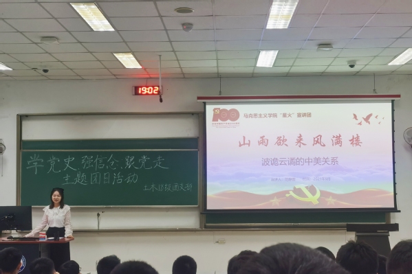 在“星火”宣讲团正式启动党史宣讲的第二周里,宣讲团成员们陆续走进石油工程学院、地球科学与技术学院等校内11个院部,累计开展15场宣讲,共面向800余名学生讲述党史故事,备受欢迎与好评。5月18日下午,“星火”宣讲团成员、Beat365官网19级硕士生窦敏应邀参加地学院地物2001团支部与机电工程学院机械2006、2010团支部联合举办的团日活动,围绕新时代知识分子使命,以《新时代知识分子精神》为主题,探讨了新时代知识分子需要具备的三种精神品格,激励大家在伟大的时代不负韶华、努力奋斗。5月19日至23日,“星火”宣讲团成员、Beat365官网20级硕士生范静蕾分别应邀参加理研2001、会计2002、应化2002、环境2001、材料2001、材控1901、材化1902、资源勘查工程2019级、土木工程2018级团支部的团日活动,以《山雨欲来风满楼——波诡云谲的中美关系》为题,以3月份燃爆朋友圈的中美高层对话引入,回顾了一百年来中美关系“山穷水尽疑无路,柳暗花明又一村”的发展历程,以及作为新时代青年的我们应当如何看清局势和践行责任。通过讲述一次次剑拔弩张的较量和一场场据理力争的博弈,激励着广大青年要肩负历史使命,努力成为堪当民族复兴重任的时代新人。