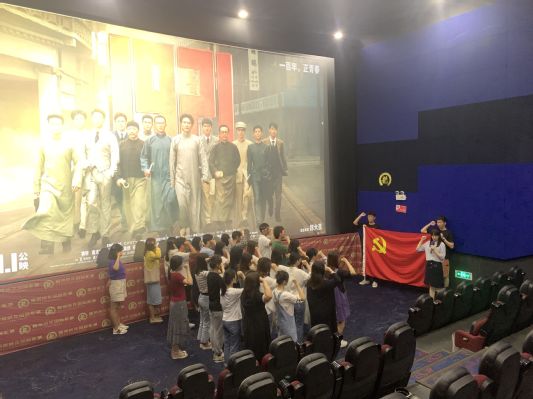 活动开始,伴着响亮的《百年红船》,学院师生共同合影留念,之后大家入座观看电影《1921》。电影《1921》采用多线叙事,浓墨重彩地表现了中共一大这一重大革命历史事件,以及中共一大召开前后共产国际的风云变幻。观影过程中,大家不仅回顾了建党的艰辛历程,同时也被故事中第一代党员开天辟地、敢为人先的英雄气概和坚定理想、为国为民的家国情怀深深打动,进一步加深了对党的理解和认识。