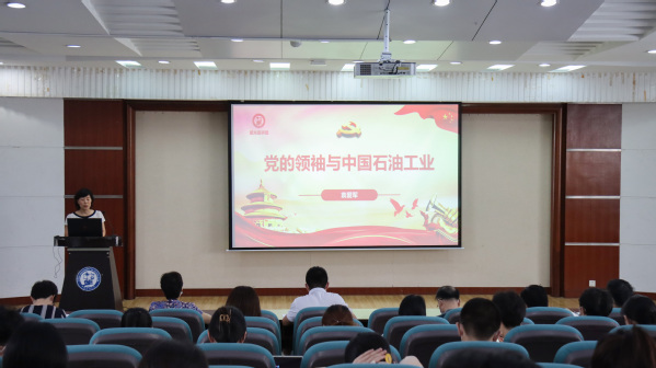 袁爱军老师按照时间顺序,从中华人民共和国成立初期艰苦探索时期、大庆会战快速发展期、改革开放阔步前进时期、以及新时代需守正创新进一步弘扬石油精神四个方面,用详实的史料,生动的语言,震撼的影像,讲述了中国共产党领导下的中国石油工业走过的光辉发展历程。指出中国共产党的领导是石油工业发展的根本保证;石油人的拼搏奉献是石油工业发展的基础;石油精神是党领导下石油工业发展的宝贵精神财富;作为青年人,应进一步学习“爱国、创业、求实、奉献”的石油精神,发扬“家国同心,艰苦奋斗,惟真惟实,追求卓越”的石大精神,坚定理想信念,勇担时代使命。
