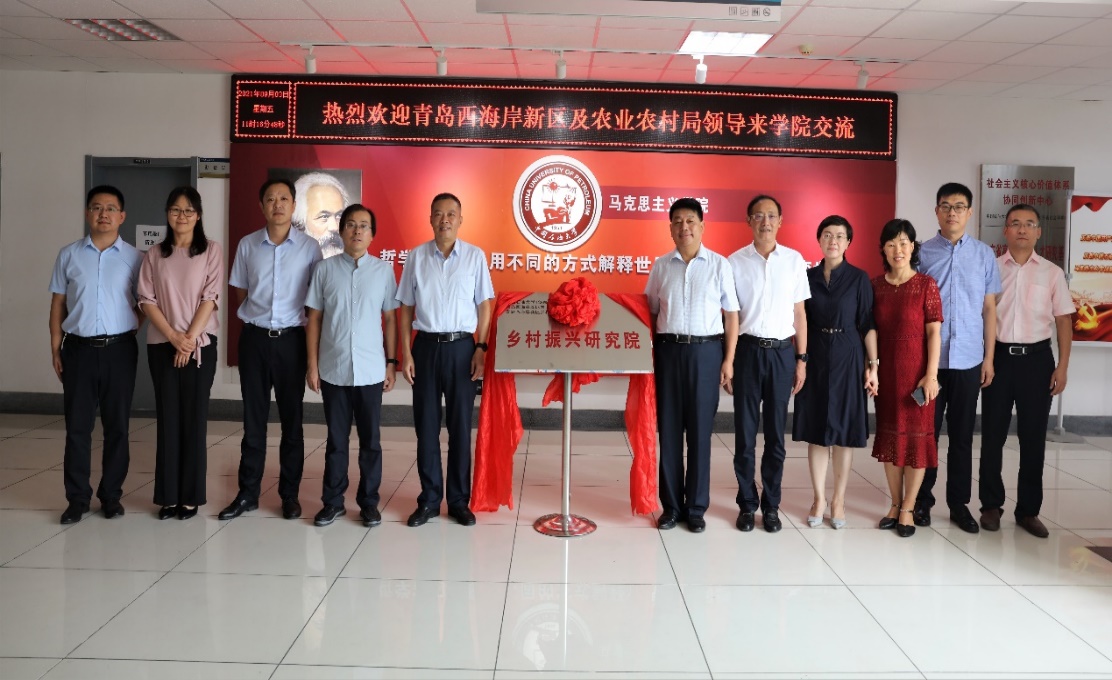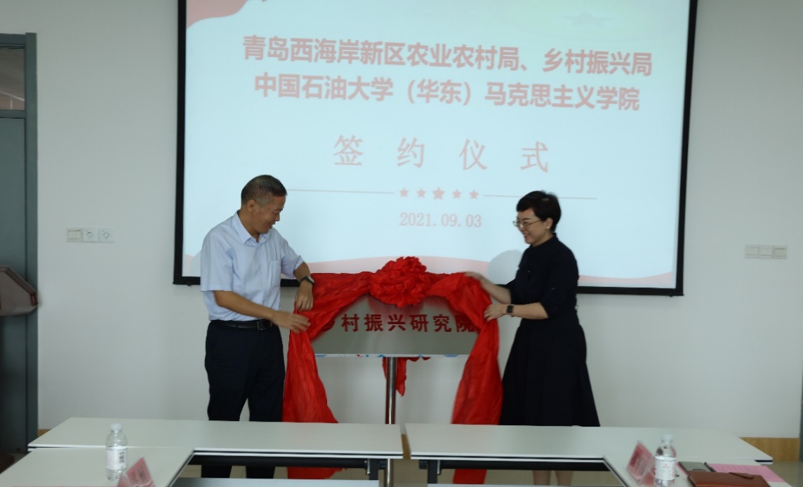 随后,张瑞涛院长与青岛西海岸新区农业农村局、乡村振兴局局长王卫青签署合作协议;Beat365官网文科建设处副处长金玉洁与青岛西海岸新区分管领导刘记军代表双方为“乡村振兴研究院”揭牌。