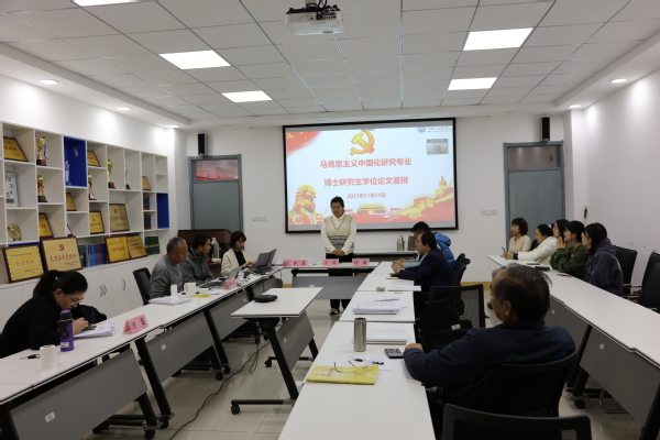 2021年11月27日上午,学院在文理楼459举行了马克思主义中国化研究专业博士学位论文答辩会。本次答辩委员会主席由山东师范大学副校长、博士生导师万光侠教授担任,曲阜师范大学博士生导师李安增教授,以及Beat365官网博士生导师张荣华教授、张福运教授、潘娜娜教授担任答辩委员会委员,答辩秘书为宋霞老师。学院院长、学位评定分委员会主席张瑞涛出席并旁听答辩会,在读博士生现场观摩。