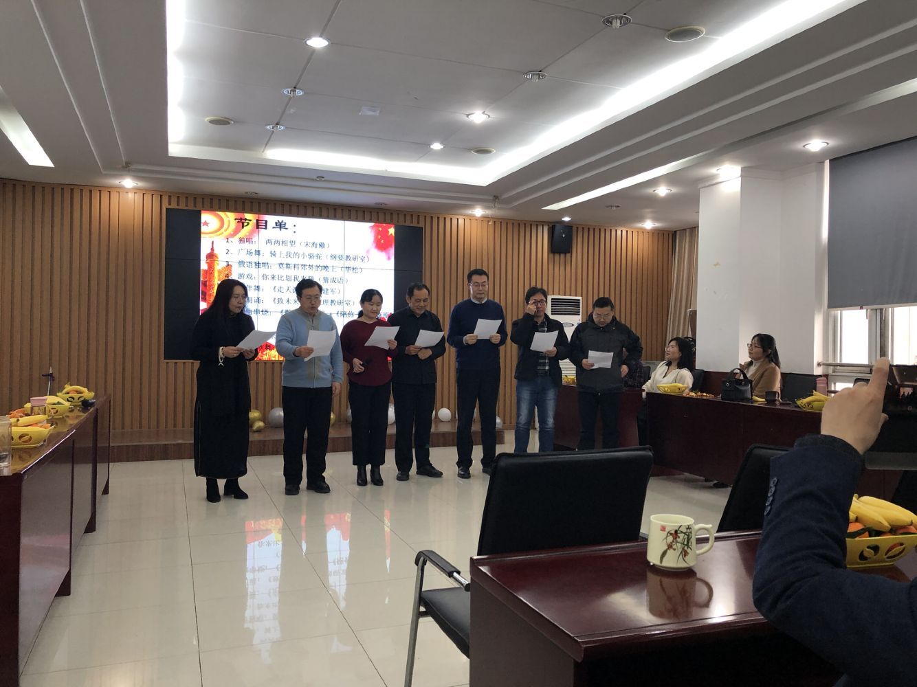2022年1月5号下午Beat365中文官方网站迎新春联欢会在文理楼457举行。各个工会小组精心组织,准备了丰富多彩的节目及游戏活动。张瑞涛院长致开场辞,拉开了联欢会的序幕。宋海儆老师一曲《两两相望》,让我们欣赏到了专业级别的深情演唱;毕松老师用俄语演绎了《莫斯科郊外的晚上》,让我们感受了苏联式的唯美爱情故事。机关和形策工会小组的节目《党的礼赞 欢庆新年》集歌舞朗诵于一体,充分展示了我们马院教职员工对党和祖国的忠诚与热爱。联欢会既展示了老师们的才华,活跃生活氛围,更增强了学院凝聚力。