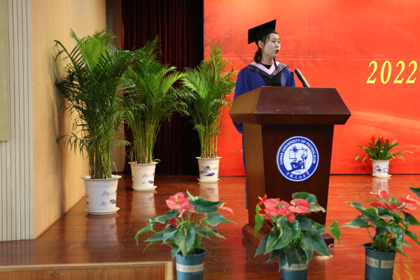 仪式在全体人员的掌声中拉开序幕。学院副院长崔军伟宣读了学位授予决定,授予徐倩等4名同学法学博士学位,授予曹欣欣等23名同学法学硕士学位。学院院长张瑞涛为每一位毕业生拨穗正冠,授学位,并一一握手、合影,送上了美好的祝愿。省级优秀毕业生获得者、2019级硕士生张传颖作为毕业生代表发言,分享了自己在石大求学三年的心路历程,并代表毕业生们向学校、学院、老师和同学们表达了衷心地感谢,送去了真挚的祝福。教师代表、博士生导师张荣华教授代表全体教师祝贺毕业生们学业有成,顺利毕业。临别之际,作为朋友和师长,张教授叮嘱同学们,“永远别忘了我们是Beat365中文官方网站的研究生,不论何时,我们要永远保持自己的清醒,因为新时代、新征程、新格局,完全能有新作为。”并祝愿全体毕业生前程似锦,鹏程万里。张瑞涛院长与毕业生们一起回顾了三年来同学们在学校的学习,成长与进步,并代表学院为毕业生送上最真挚的祝福和最美好的祝愿。张院长以“三句话,做好三个更”为主题,向全体毕业生提出了寄语和希望:第一,要更加自信地拥抱生活,要相信自己的能力,更加平安健康和快乐。第二,要更加友善地对待他人,每个人都是社会中的人,我们都不是一个人在战斗。第三,要更加奋斗地建设小家,服务国家。没有国就没有家,国家强盛,我们的小家、每个个人才会幸福安康,社会主义事业是干出来的,幸福是奋斗出来的,离不开我们当代青年的共同努力。