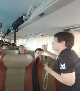 解晓燕老师在巴士上为团员授课