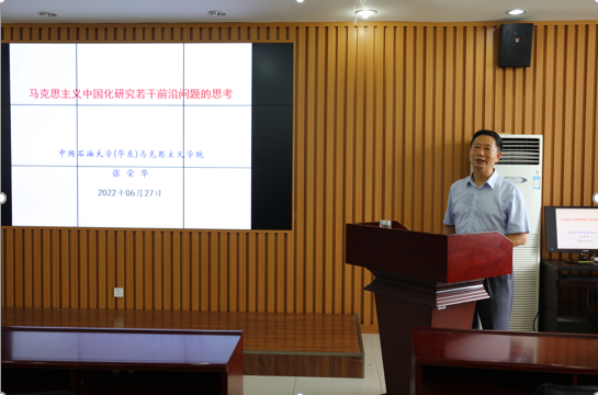 6月27日下午,学院在文理楼457顺利举办第26期“成长沙龙”活动。本期活动邀请学院张荣华教授作题为“马克思主义中国化研究若干前沿问题的思考”专题讲座。此次活动由学术部王舒宁主持,学院党委副书记、副院长袁爱军老师,辅导员王会老师和全体学生共同参加。