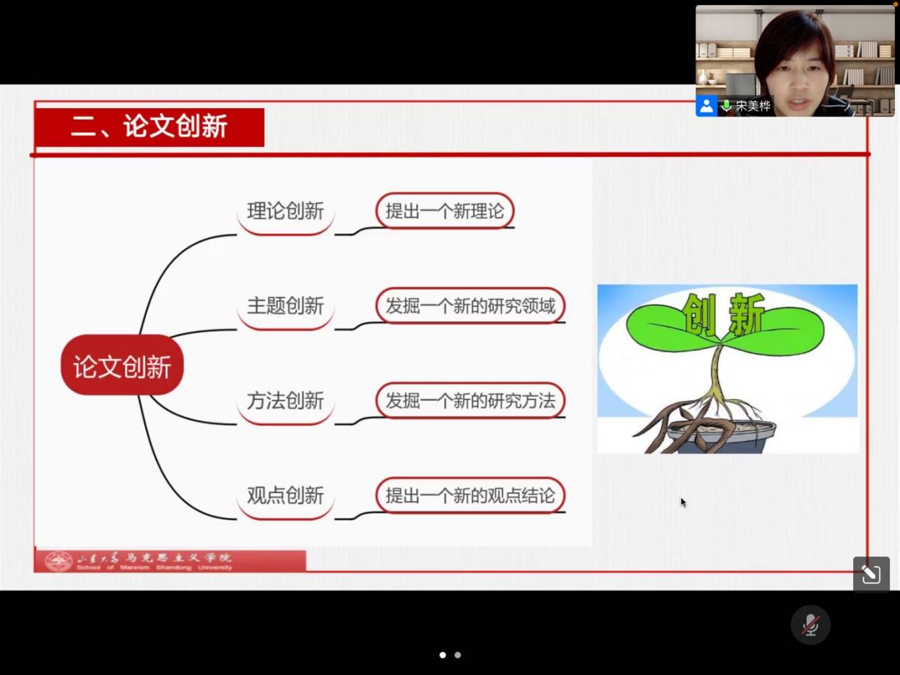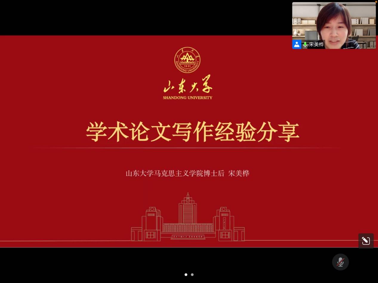 为使同学们更好地掌握论文写作方法与技巧,提高学术论文的质量和水平,7月4日下午,马克思主义中国化研究方向召开线上读书分享会。本期读书会邀请到山东大学Beat365中文官方网站博士后宋美桦老师作题为“如何写一篇优秀的学术论文”的经验分享。本次读书会由班主任毕松老师主持,全体2021级马克思主义中国化方向硕士研究生参加。