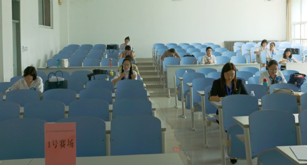 参赛选手通过抽签确定参赛顺序并在“等候室”等候,在个人比赛前30 分钟按照参赛组别抽取题目,进入“准备室”备赛。决赛采取板书方式进行10分钟现场教学展示,专家评委根据参赛选手的教学内容、教学方法、教态语言等方面进行综合考评。