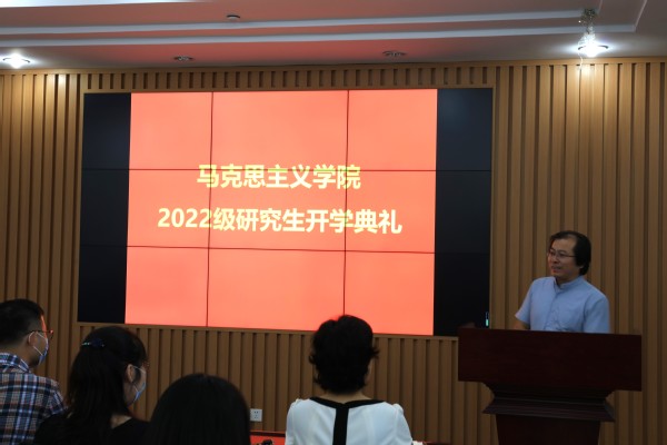 新生代表2022级硕士研究生倪萌进行了题为“以梦为‘马’,不负韶华;磨砺使得玉成,奋斗方能致远”的发言,倡导马院学子应展现蓬勃的朝气和新时代青年该有的责任担当,做“鼓足劲头”的奋斗者、“勇立潮头”的石大人。在校生代表2021级硕士研究生蒋嘉诚在发言中对我们马院青年“该成为什么样的人”发表了自己见解,并鼓励新生锻炼好自身本领,更好为时代服务助力。教师代表,形势与政策教研室主任郎帅副教授从自身学习经历出发,分享了自己的学习经验,并对新生提出了“目标高一点”“步子快一点”以及“知识多一点”这三“点”期待。最后,院长张瑞涛教授在讲话中鼓励新生在学习中要明确目标,在生活中要劳逸结合,并希望新生能够成为一个有情怀、有理想并且阳光快乐的人。