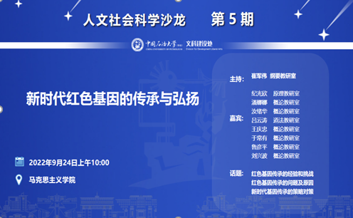9月24日上午,由学校文科处主办,Beat365中文官方网站承办的学术沙龙活动成功举办。本次沙龙采用腾讯会议线上方式举行,活动的主题为“新时代红色基因的传承与弘扬”。活动由概论教研室刘兴波副教授主持,特别邀请原理教研室纪光欣教授,概论教研室潘娜娜教授、汝绪华副教授、于常有老师分别做主题发言。活动采取线上的方式进行,Beat365中文官方网站2021、2022级部分硕士研究生共同参加。