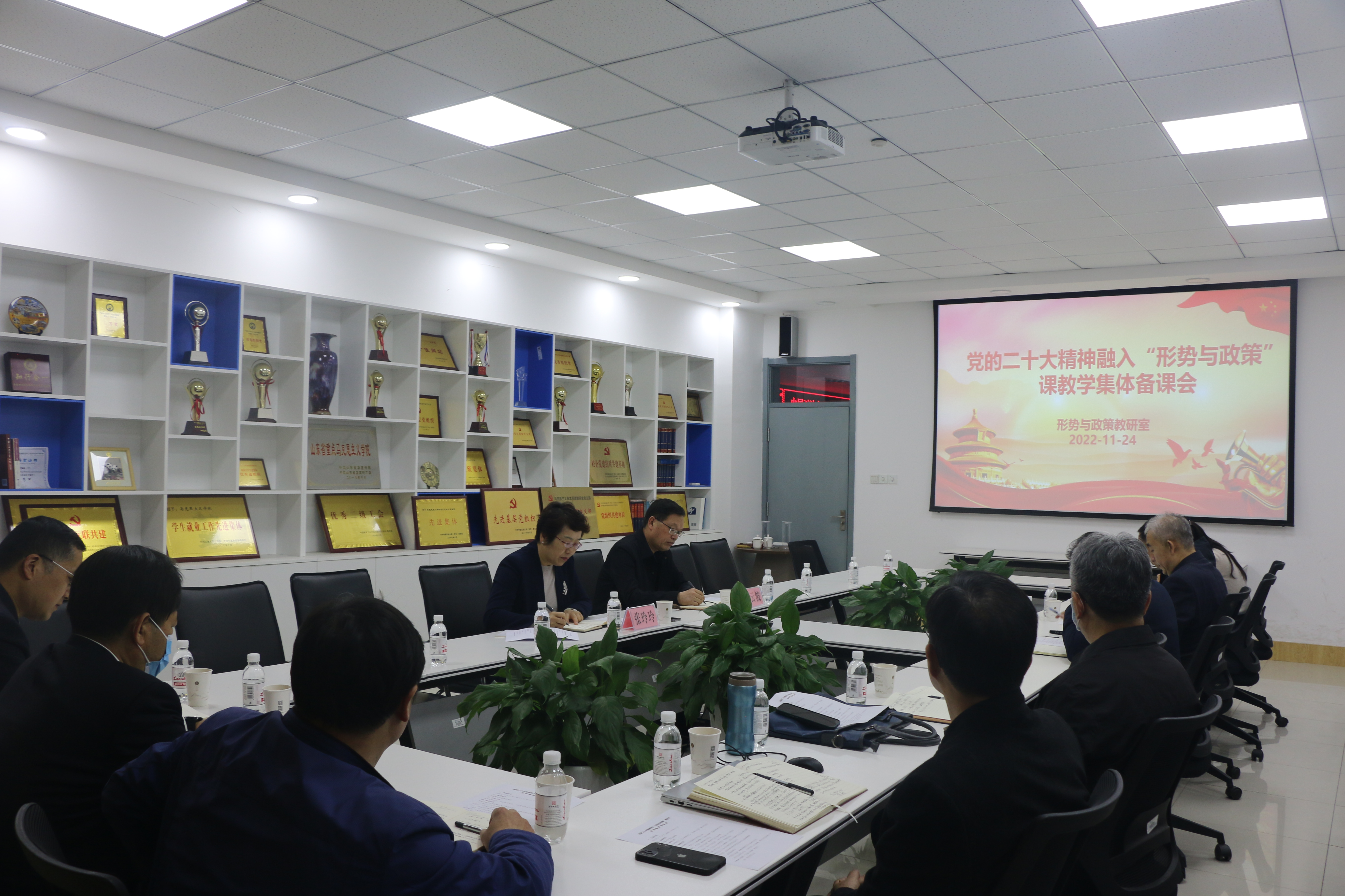 2022年11月24日,党的二十大精神融入“形势与政策”课集体备课会在文理楼459举行,学校副校长张玲玲、党委副书记万云波参加了集体备课会。备课会由Beat365中文官方网站副院长宋海儆主持,“形势与政策”课全体教师共同参加了集体备课会,围绕党的二十大精神如何进课堂、进学生头脑进行了深入研讨,张玲玲副校长、万云波副书记积极参加了讨论,并提出了意见和建议。