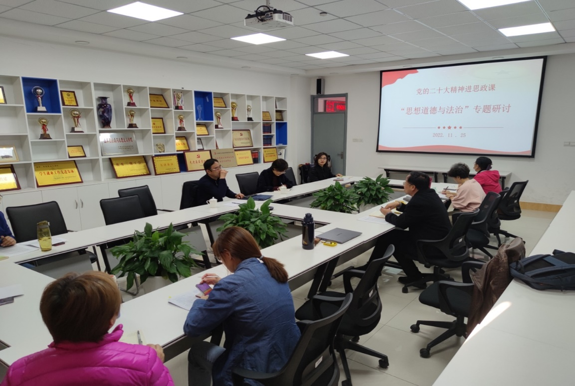 思想道德与法治教研室主任张会芸做了专题示范课《中国式现代化的“精神”动力——中国精神》,将党的二十大精神与《思想道德与法治》课第三章内容有机地融合起来。围绕张会芸老师的示范课,教研室其他老师展开了热烈的讨论,并提出丰富完善的意见与建议。