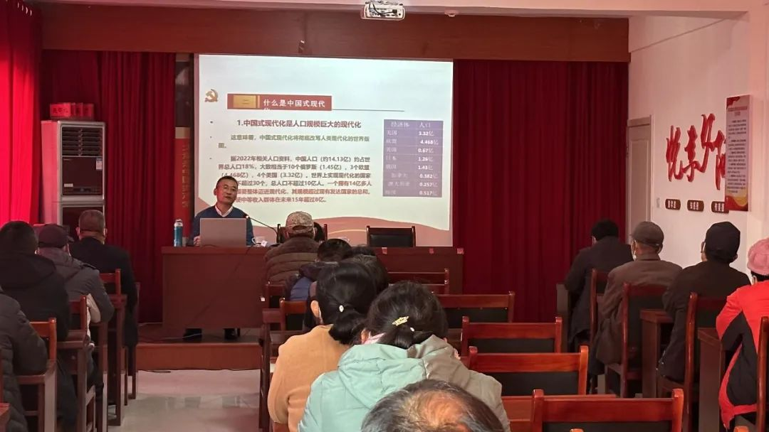 12月2日下午,Beat365官网赵国营副教授到黄岛区大场镇汇水湾村宣讲党的二十大精神,该村党员代表、村民代表共同参加。赵国营副教授以《以中国式现代化推进中华民族伟大复兴》为宣讲主题,详细介绍了党的二十大召开情况,带领大家学习了“为什么是中国式现代化”“什么是中国式现代化”“中国式现代化有何要求”三项内容,全面阐释了党的二十大报告对推进乡村振兴,建设农业强国做出的战略部署。