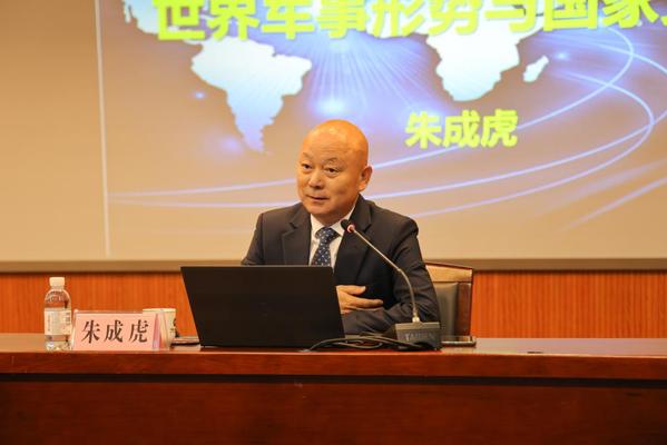 朱成虎少将作题为“世界军事形势与国家安全”的专题报告 葛浩然摄影