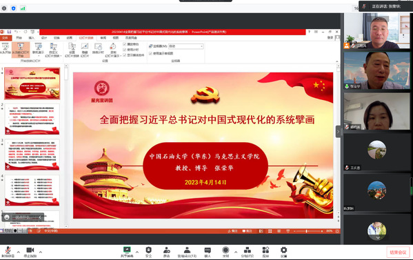 为深入学习宣传贯彻党的二十大精神,全面领会把握落实学习贯彻习近平新时代中国特色社会主义思想主题教育的总要求,414日下午,毛泽东思想和中国特色社会主义理论体系概论教研室党支部与习近平新时代中国特色社会主义思想概论教研室党支部联合开展主题教育。本次活动特邀张荣华教授作题为“习近平总书记对中国式现代化的系统擘画”的专题报告,两个党支部所有无课党员在线上参与活动。