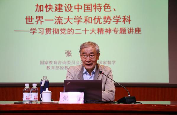 报告会上,张力结合党的二十大报告和我们党百年来教育发展历程,运用大量数据和事例,深刻阐述党的二十大关于教育、科技、人才战略部署的重大意义,详细解读加快建设中国特色、世界一流大学和优势学科的基本政策导向。他表示,在中国式现代化、教育现代化背景下,要深刻把握党中央关于新时代推进产学研协同创新、深度融合的政策导向,注重推进产学研协同创新,推进产学研一体化,加快建设中国特色、世界一流的大学和优势学科。
