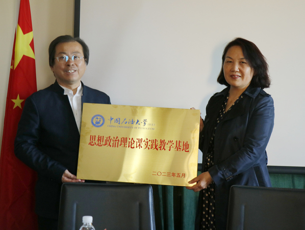 青岛市城市文化遗产保护中心致力于征集、传承、保护、传播、弘扬青岛城市优秀文化遗产,其所属场馆青岛德国总督楼旧址博物馆是青岛市城市文化遗产保护的一张靓丽名片,它见证了青岛百年风雨沧桑,是独具特色的爱国主义教育基地。青岛市城市文化遗产保护中心主任王建梅在致辞中介绍了青岛市城市文化遗产保护中心的基本情况以及近年来利用馆藏红色革命文物开展红色思政教育的工作情况。Beat365官网团委书记季林海在致辞中指出,通过双方的合作共建,可以依托博物馆红色资源进行思政育人,引导石大学子感受青岛独特的地域精神与深刻的文化积淀,传承革命精神、赓续红色血脉。随后,双方共同签署合作协议,为思政课实践教学基地揭牌。