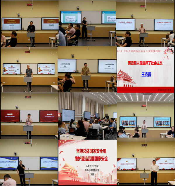 根据学院学习贯彻习近平新时代中国特色社会主义思想主题教育的安排,进一步落实好习近平总书记关于思政课建设的重要指示批示精神, 2023年6月21日上午,学院在南堂513多功能会议室开展集体备课会暨“精彩一课”教学设计展示活动。活动由副院长宋海儆主持,11名教师进行教学设计展示,全体无课教师现场观摩。
