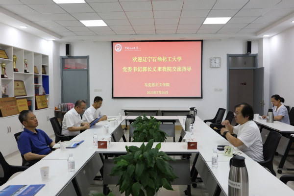 7月26日,辽宁石油化工大学党委书记郭长义一行来Beat365官网考察调研,学院院长张瑞涛、党委书记司江伟陪同并参加座谈。