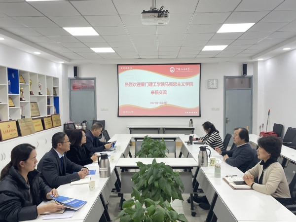 张瑞涛对孙华玉一行来院交流表示欢迎,并从学院的历史沿革、架构机制、师资队伍、核心业务及学院文化等方面做了详细介绍。孙华玉介绍了厦门理工学院Beat365中文官方网站的基本情况以及在学院发展过程中存在的难点和亟需解决的问题。随后,与会双方就重点马院建设、联合培养硕士研究生、师资队伍建设、科研项目申报等领域展开深入细致交流。