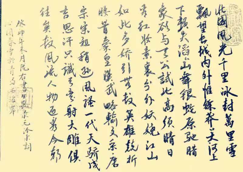 马院全体教职工积极参与,认真设计底稿书写诗词,完成独具特色的书法作品。本次书法比赛共收到了六十余幅书法作品。“毛主席诗词书法比赛”以书写毛主席经典诗词《沁园春 雪》为主体,在书写的过程中重温毛泽东诗词的豪放风格,体会主席意境壮美、气势恢宏、感情奔放、胸襟豪迈的英雄气概,为新时代我们团结一心实现中华民族伟大复兴提供精神力量!