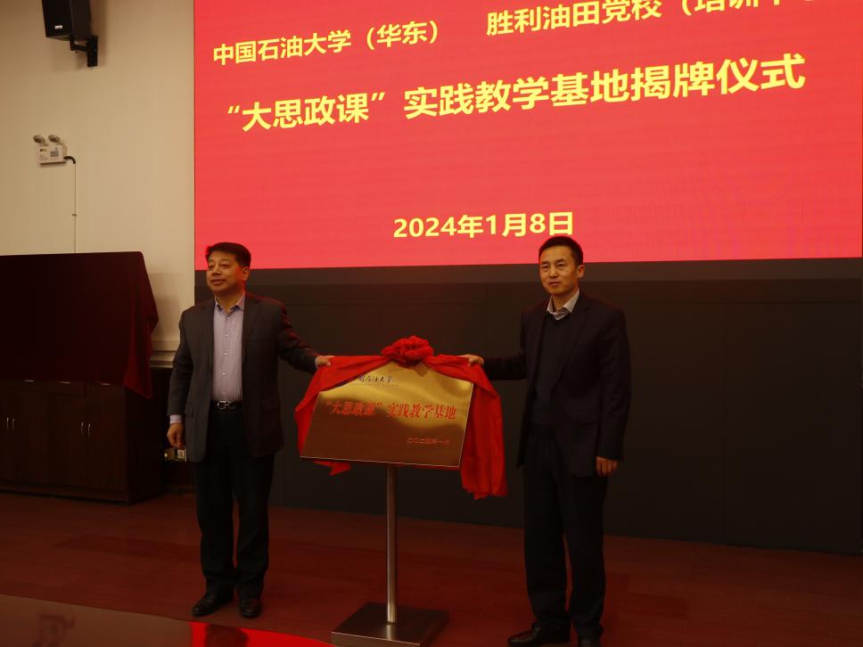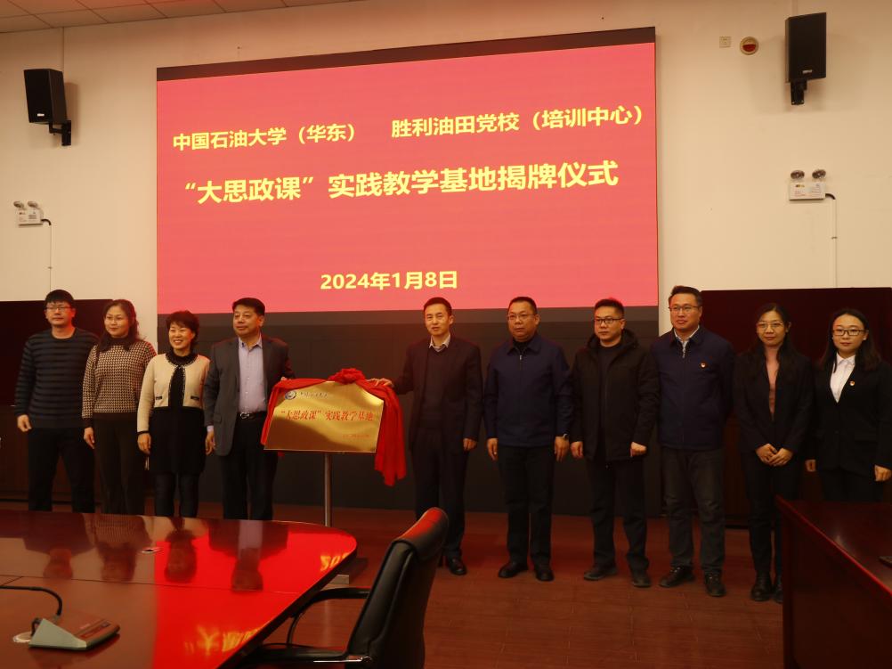 1月8日,学院与胜利油田功勋井结对共建“大思政课”实践教学基地揭牌仪式在胜利油田党校笃行楼举行。Beat365中文官方网站党委书记司江伟、胜利油田党校副校长、培训中心经理、党委副书记郑玉奇为基地揭牌,Beat365中文官方网站副院长宋海儆、党委副书记、副院长袁爱军和部分教师学生代表参加了揭牌仪式。