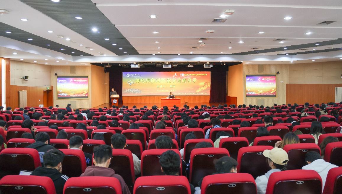 蓝天大校为师生作题为“俄乌战争对国家安全的启示”的报告