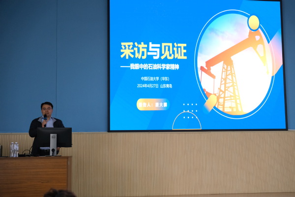 唐大麟先生与同学们分享了自己对李德生、胡文瑞、刘合、孙金声、翟光明等32名院士的采访故事,从一段段精彩的故事中诠释他眼中的石油科学家精神。他认为石油科学家精神是几代石油科技工作者们苦干实干奋斗出来的,给同学们带来了一场生动又感动的“大思政课”。在自由交流环节,同学们积极发言,在工作选择、专业问题以及学习生活方面向唐大麟先生进行咨询,唐大麟先生对同学们的提问表示欢迎并一一作出了详尽的解答。通过这次活动,学生在不断启发中感悟石油科学家精神,也进一步明确了作为新时代大学生的责任与使命。课后同学们纷纷表示,此次思政课既有高度又有温度,生动又深刻,为他们学习践行石油科学家精神起到了重要作用。