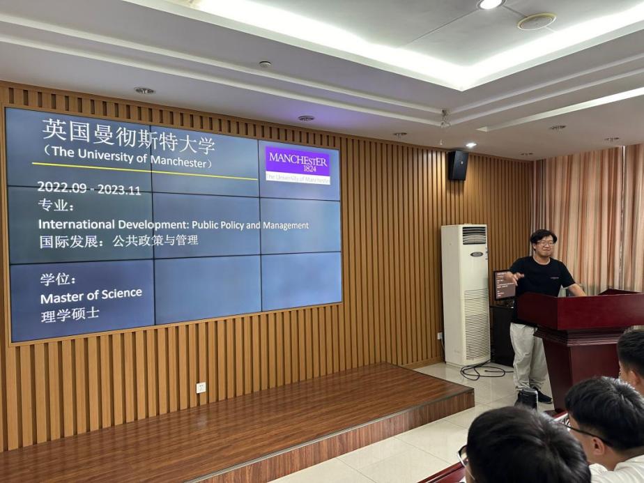 本次活动内容丰富,共举办了三场主要活动。2022级研究生周家豪率先以“台湾清华大学访学之旅:学术与文化的双重收获”为主题,分享了他的访学经历,展示了学术成长与文化融入的宝贵经验。随后,2023级博士生高智恒结合线上线下形式,进行了“留学曼彻斯特:从校园到全球视野的跨越”宣讲,重点介绍了在曼彻斯特大学的留学生活和对全球视野的开拓,并通过线上平台与家长互动,进一步增强了活动的参与感和覆盖面。
