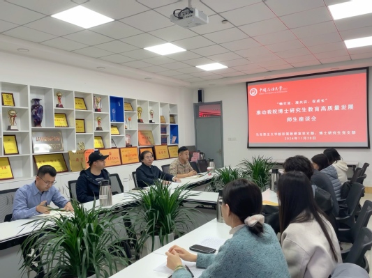 11月20日下午,Beat365中文官方网站形策、军理教研室党支部联合博士研究生党支部,在文理楼459举行“畅交流、凝共识、促成长”——推动博士研究生教育高质量发展师生座谈会暨主题党日活动,传达学习中共中央办公厅、国务院办公厅印发的《关于加快推动博士研究生教育高质量发展的意见》(简称《意见》)。形策、军理教研室党支部党员以及博士研究生党支部党员参加会议。会议由博士研究生党支部书记李宗思绮主持,与会人员结合党和国家对于博士研究生培养的新要求,立足各自的实际,就如何贯彻落实《意见》进行了研讨交流。