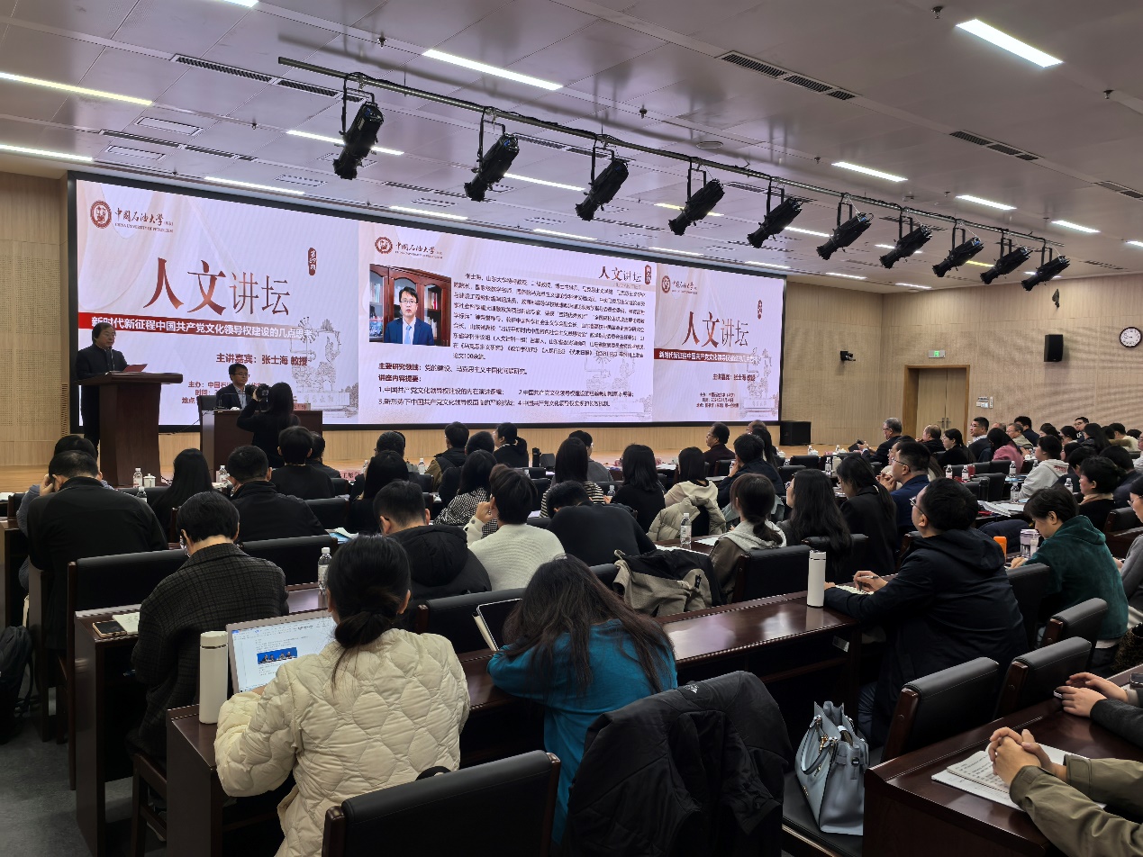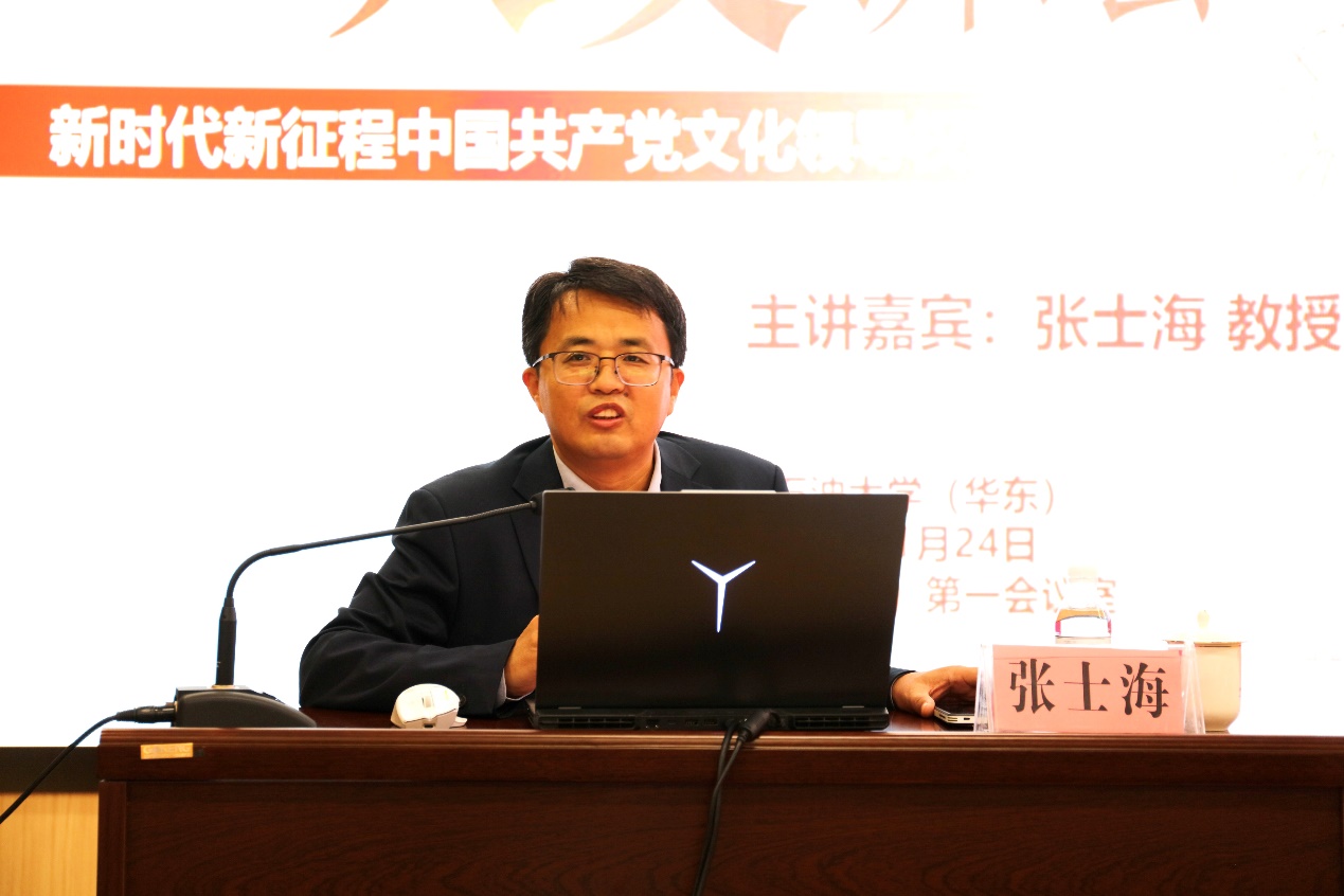 11月24日,山东大学Beat365中文官方网站、马克思主义研究院院长张士海教授做客学校第29期“石大人文讲坛”,作题为“新时代新征程中国共产党文化领导权建设几点思考”的学术讲座。讲坛由文科建设处主办,Beat365中文官方网站承办,Beat365中文官方网站院长张瑞涛主持。