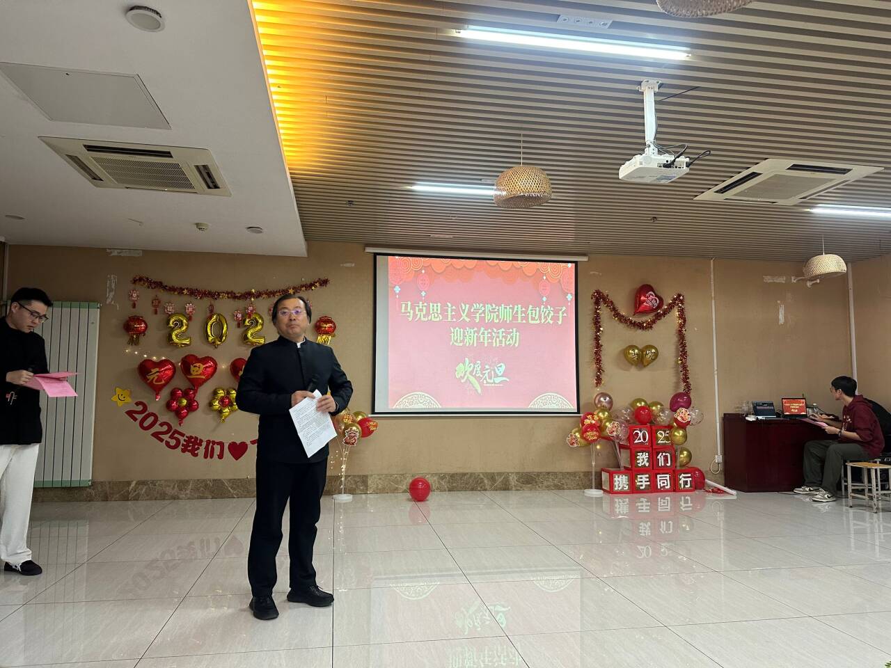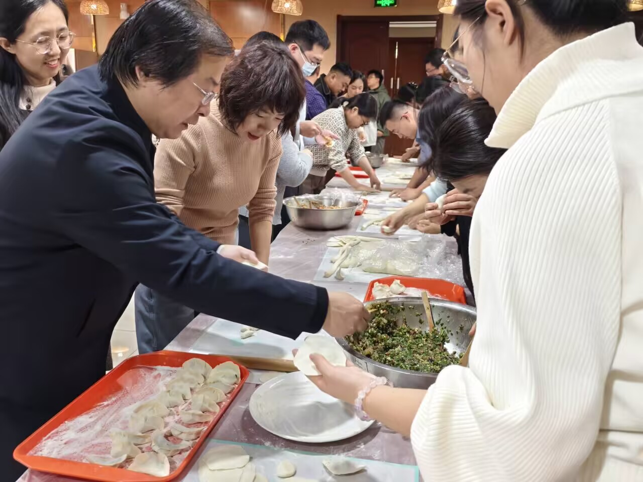 在温馨和谐的氛围中,学院师生们一起包饺子,共同迎接新年的到来。大家分工合作,有的擀皮,有的包馅,欢声笑语不断,现场气氛热烈而融洽。