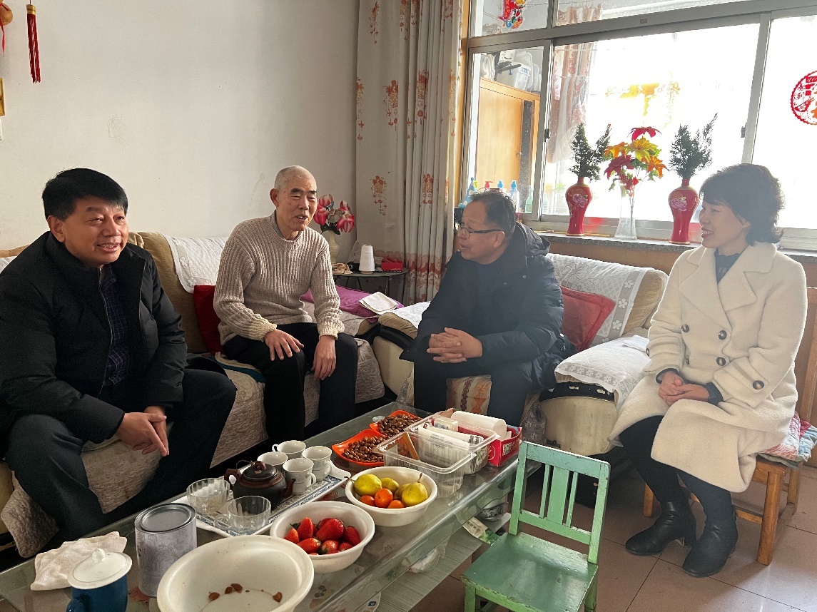1月21日,学院院长张瑞涛、副院长崔军伟赴北京看望慰问离退休教职工,先后赴贺安敬、李明情、陈瑞芬等老教师家中,送上慰问品并与他们亲切交流。学院领导详细询问了他们身体状况和生活情况,通报了学院一年来主要工作的进展,感谢他们多年来为学院发展做出的贡献,以及对学院各项事业的关心与支持,听取了老教师的意见建议,并向他们致以新年祝福和亲切问候。老教师们对学院长期以来的关心、关怀表示感谢,并表达了对学院未来发展的美好祝福。