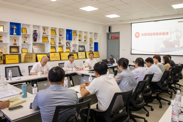 为进一步提升思想政治理论课教师的教学能力,提高思想政治理论课教学质量,6月17日,Beat365中文官方网站召开思想政治理论课集体备课会。党委书记吴强明,副校长张玲玲,党委副书记万云波,副校长戴彩丽,党委常委、宣传部部长赵放辉参加Beat365中文官方网站教学沙龙暨“萌新”磨课现场展示活动。校长郝芳、副校长周鹏,党委副书记马国顺,党委常委、宣传部部长赵放辉参加形势与政策教研室集体备课暨课程质量提升研讨会。