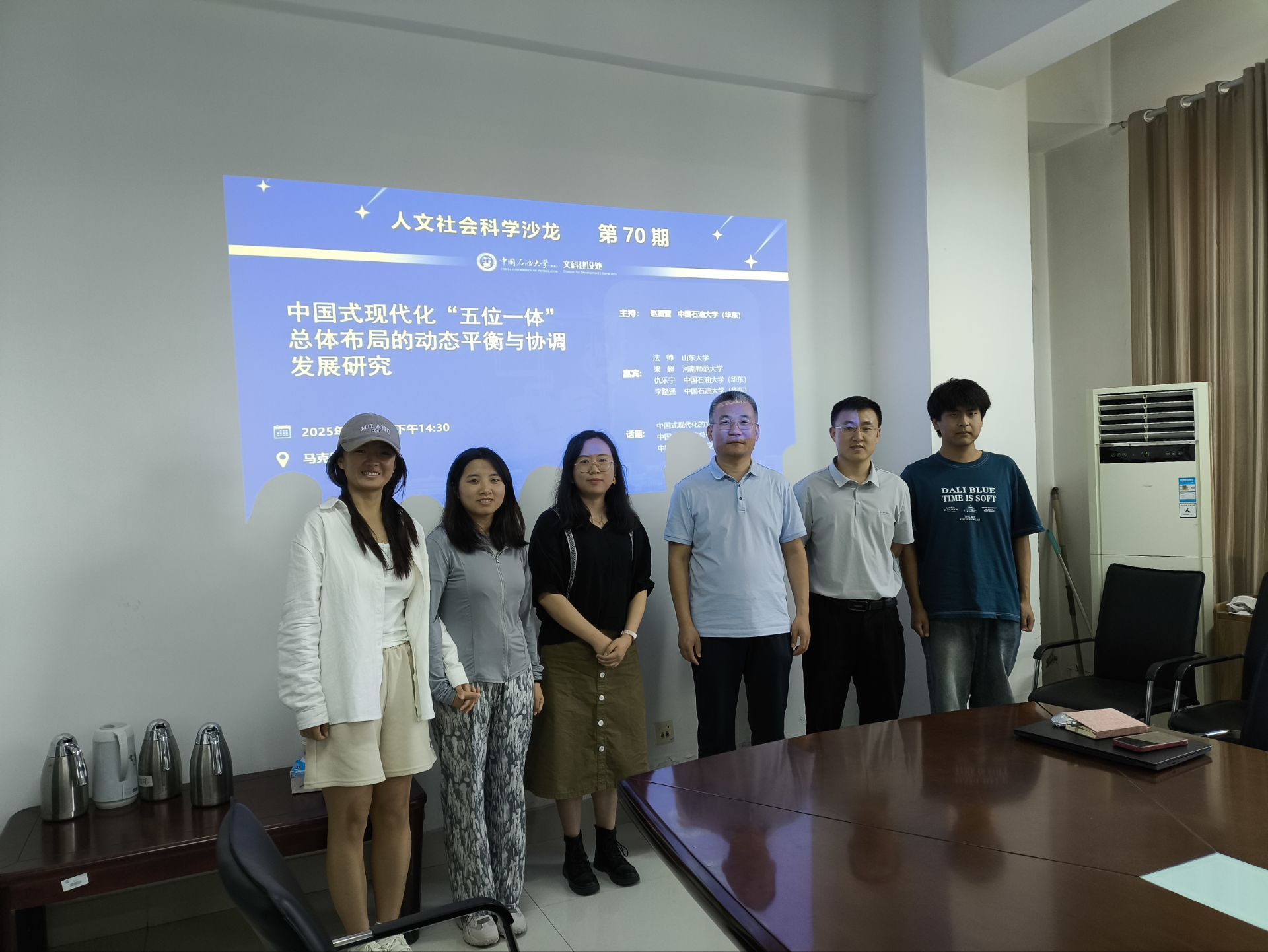 2025年6月17日上下午,第70期人文社会科学青年学者沙龙在文理楼462举行,主题为“中国式现代化‘五位一体’总体布局的动态平衡与协调发展研究”。此次沙龙由赵国营副教授主持,主讲嘉宾为山东大学副教授法帅、河南师范大学博士梁超和Beat365官网的李路遥博士、仇乐宁博士。Beat365中文官方网站部分硕博研究生参与了此次研讨。