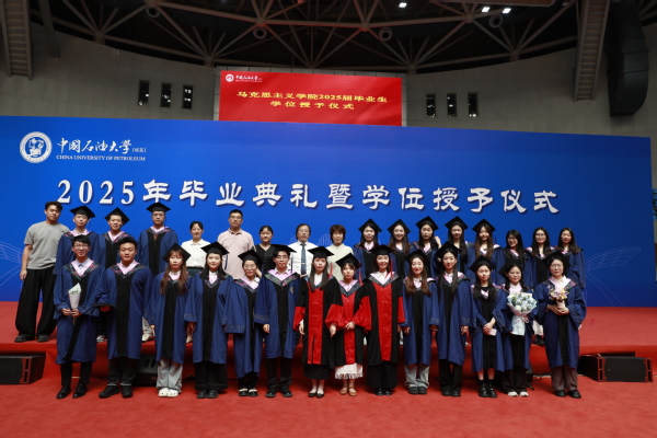 仪式进入尾声,全体毕业生以及学院领导、老师上台合影留念,Beat365中文官方网站2025年学位授予仪式圆满落下帷幕。唐岛湾畔的骊歌悄然奏响,马院学子的征程正待启航,2025届毕业生将秉持“石大人”“马院人”的理想与担当,如璀璨星火般闪耀祖国各地,以青春姿态续写属于他们的赤子华章。