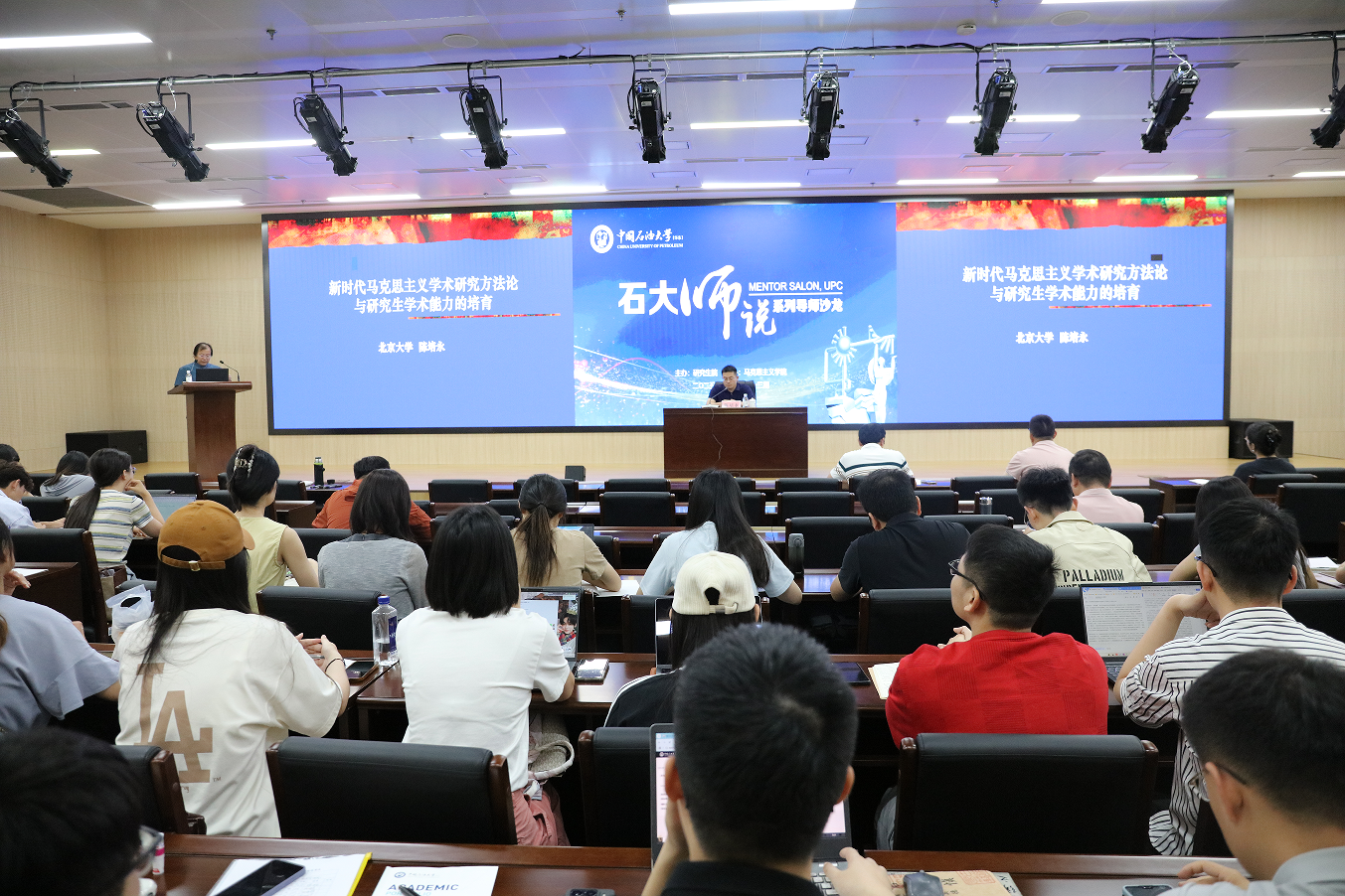 7月14日上午,由研究生院主办、Beat365中文官方网站承办的第九十三期“石大师说”系列导师沙龙在图书馆(东馆)第一会议室圆满举办。活动特邀北京大学Beat365中文官方网站副院长、教授、博士生导师,教育部“青年长江学者”陈培永,带来了主题为“新时代马克思主义学术研究方法论与研究生学术能力的培育”的讲座,Beat365中文官方网站院长张瑞涛主持本次活动,学院研究生导师和全体研究生参加,现场氛围热烈。