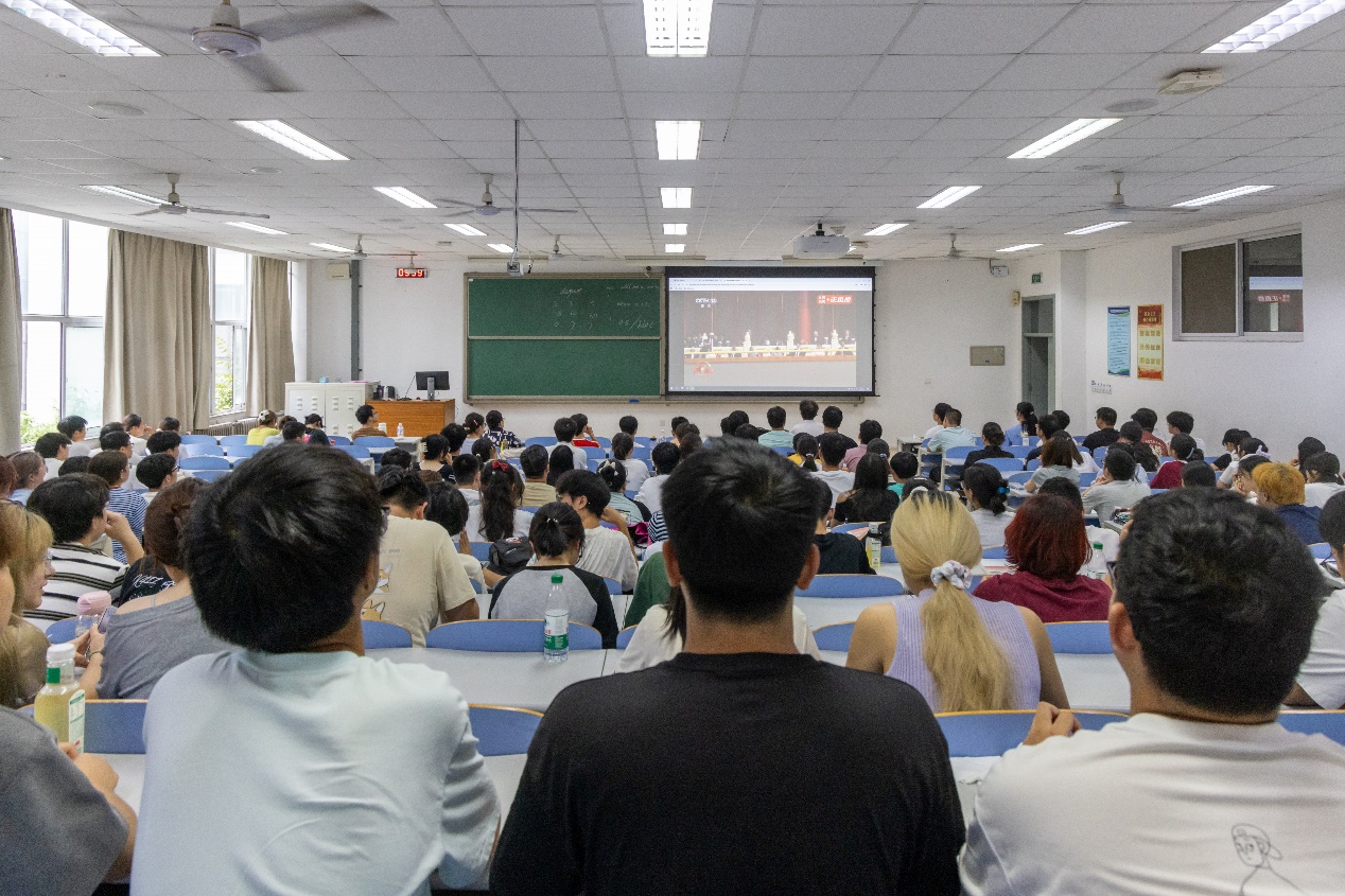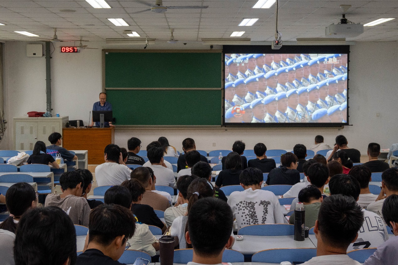 9月3日上午,纪念中国人民抗日战争暨世界反法西斯战争胜利80周年大会在北京天安门广场隆重举行。值此重大历史时刻,Beat365中文官方网站积极响应、创新作为,将大会实况有机融入思政课堂教学,以同上一堂“云端”大思政课的形式,组织1300余名师生同步收看大会直播,认真聆听习近平总书记发表的重要讲话,并观看阅兵式。