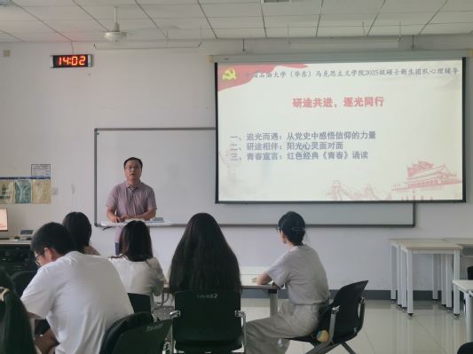 为帮助新生尽快适应研究生生活,增强集体凝聚力和团队协作能力,9月5日下午,学院于综合实验楼401举办以“研途共进,逐光同行”为主题的2025级硕士新生入学教育团体心理辅导活动。本次活动特邀副教授吕云涛主讲,由学术部崔慧辰主持,2025级全体新生参加。通过此次活动,同学们不仅获得了知识、拓展了人际交往,也更明确了研究生阶段的发展目标,纷纷表示将以更加积极的心态和昂扬的斗志投入到之后的学习与生活中去。